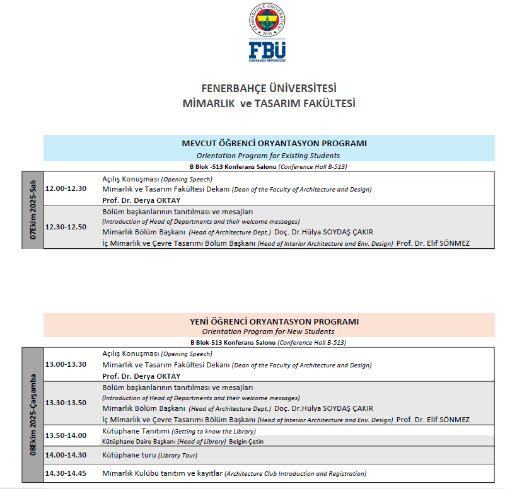 The Architecture and Design Faculty Orientation Days were held on October 7-8, 2025, in two separate sessions for new and current students. Our Faculty Dean, Prof. Dr. Derya OKTAY, welcomed students at the opening of the event and shared her vision for the faculty's future.