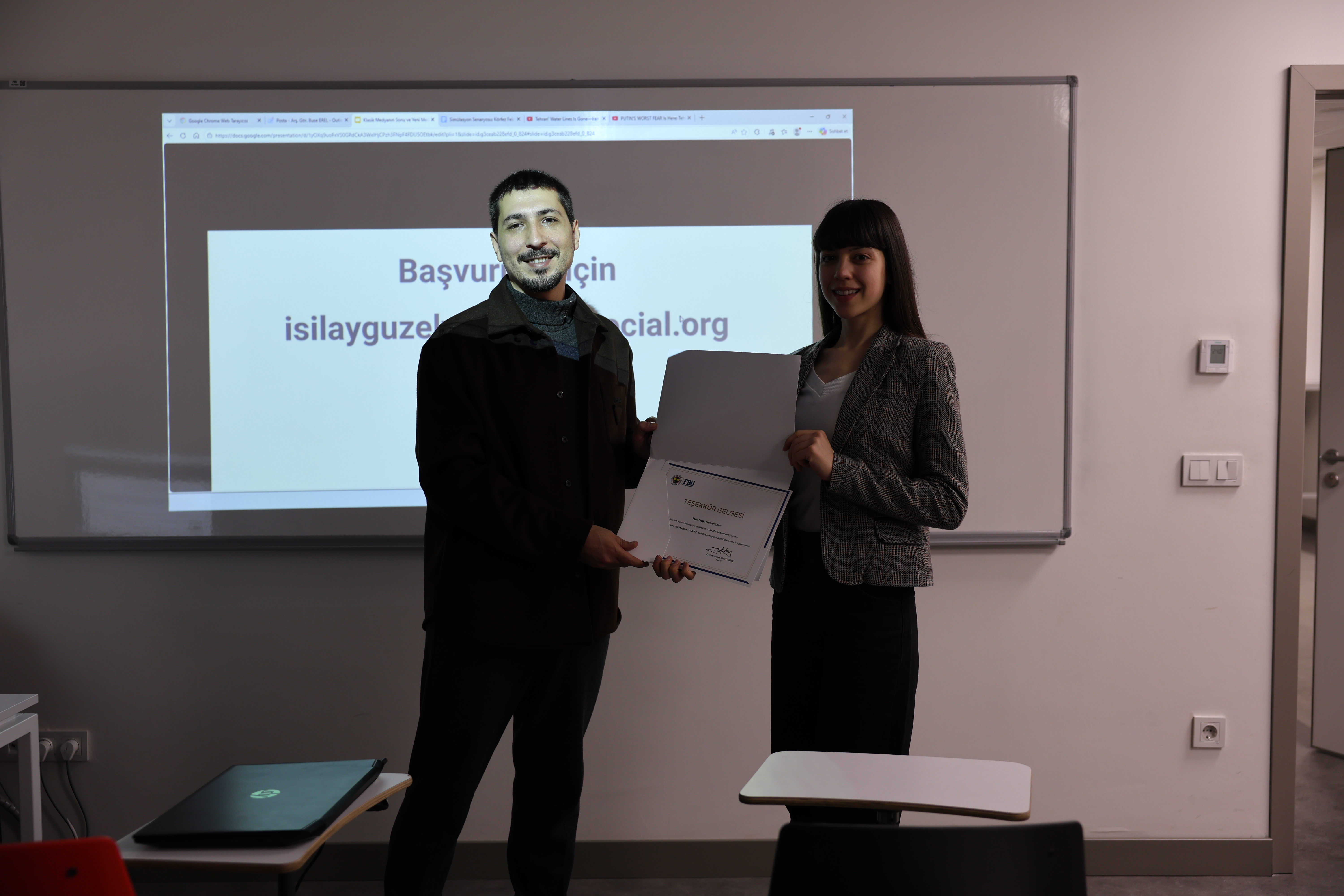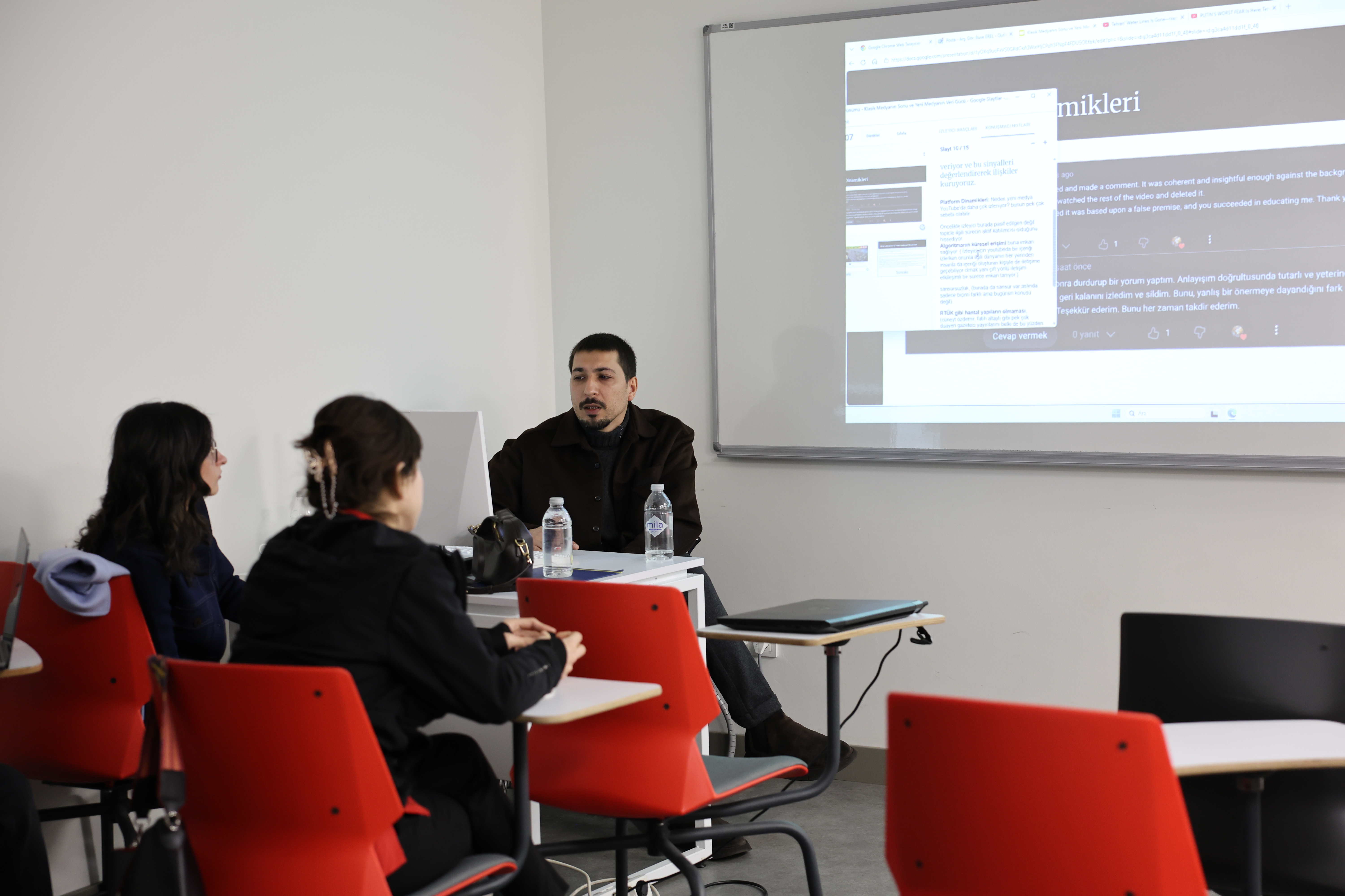 Featuring G&Y Social Media Co-Founder Eyyüp Elensari Yaşar as the speaker, the program addressed data-driven content production in the new media ecosystem, digital crisis storytelling, and strategic communication approaches. Coordinated by Research Assistant Buse Erel, the event provided participants with an opportunity to gain a conceptual and strategic framework regarding current media dynamics. As part of the program, theoretical and industry-specific insights were shared on new media strategies, including “hook” psychology, global agenda forecasting, concept development tailored to crises, and AI-supported “faceless” content creation.