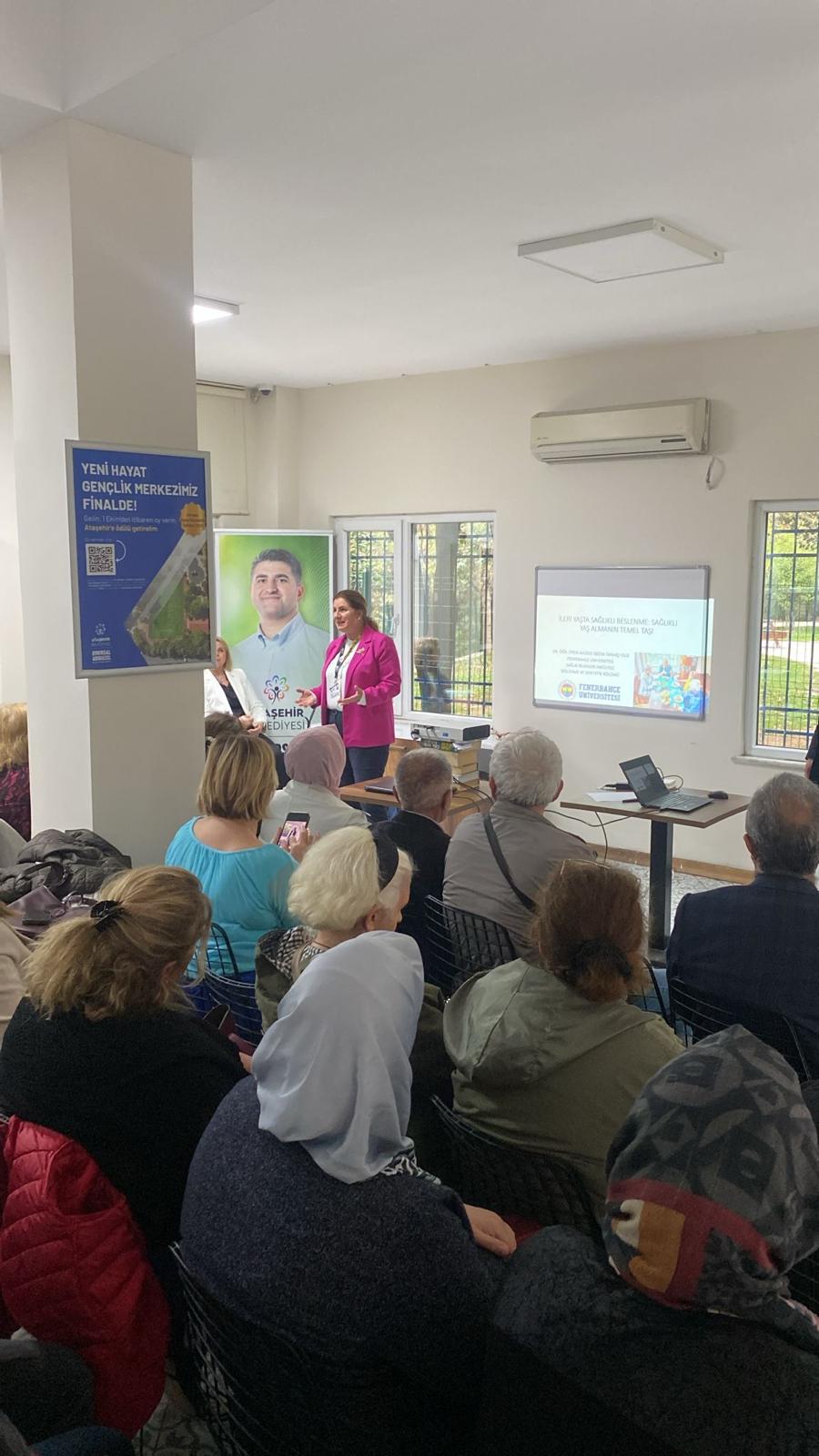 Within the scope of the protocol signed between Ataşehir Municipality and our university, the first phase of the Active and Healthy Aging Seminars was held on Wednesday, October 15, 2025, at the Ataşehir Municipality 30 August Retired Cultural Center, coordinated by Prof. Dr. Arzu Özdinçler.