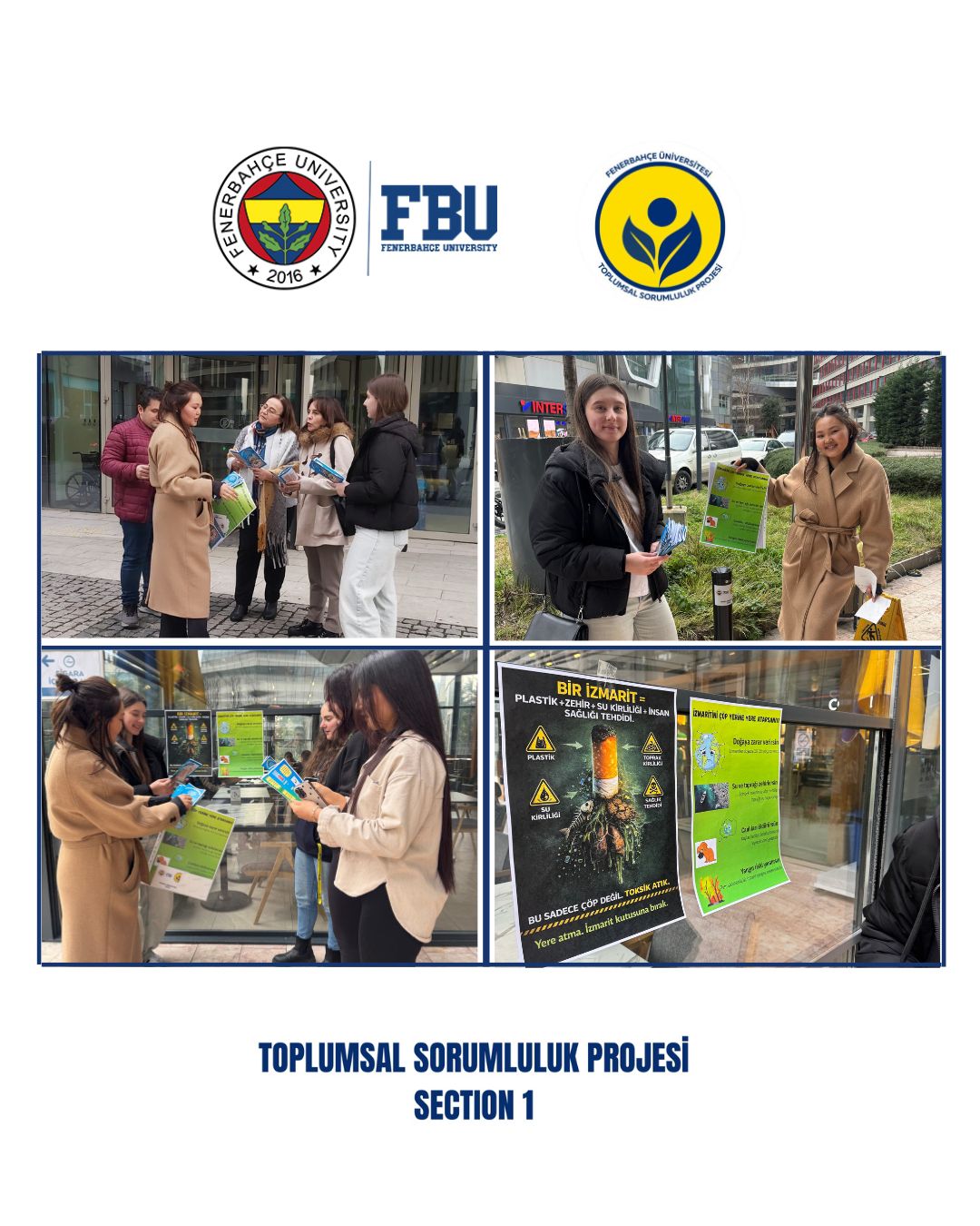The “Leave No Trace on Campus” project, carried out by Section 1 students of the CEP301 Social Responsibility Project course at Fenerbahçe University’s Faculty of Communication, implemented an important awareness campaign on campus cleanliness and environmental responsibility.