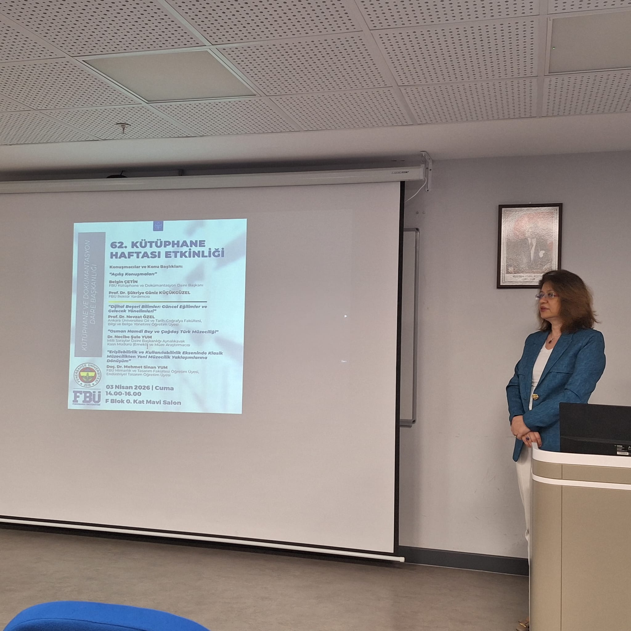 Kütüphane ve Dokümantasyon Daire Başkanlığı “62. Kütüphane Haftası Etkinliği”, 3 Nisan 2026 Cuma günü saat 14.00'te F Blok 0. Kat mavi Salon'da akademisyenlerin ve öğrencilerin yoğun katılımıyla gerçekleştirildi.