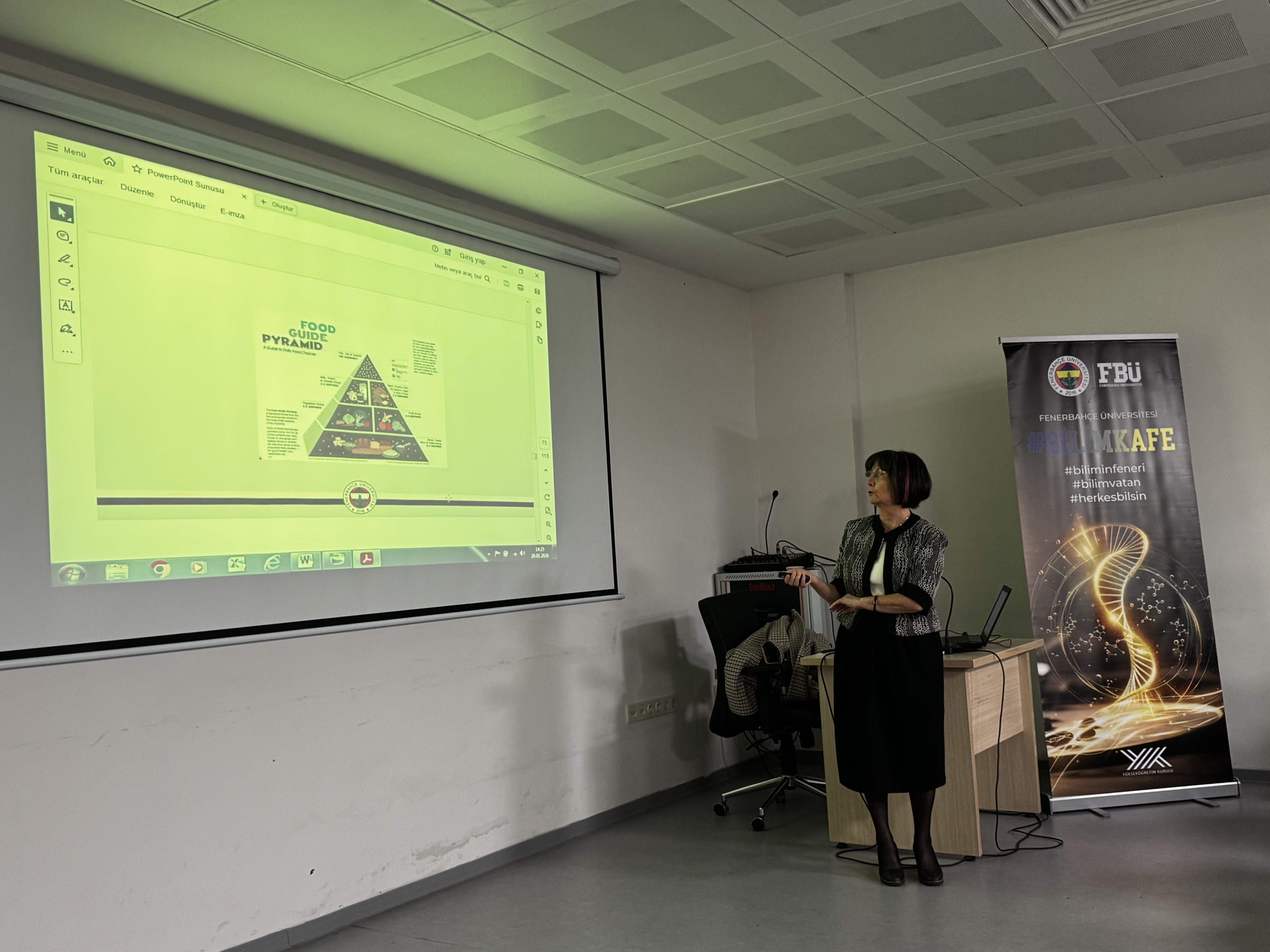 Fenerbahçe Üniversitesi Bilim İletişim Ofisi tarafından düzenlenen “İleri Yaşta Sağlıklı Beslenme İpuçları” adlı etkinlik, 20 Ocak 2026 Salı günü saat 13.00’te 19 Mayıs Sosyal Yaşam Evi Konferans Salonu’nda gerçekleştirildi.