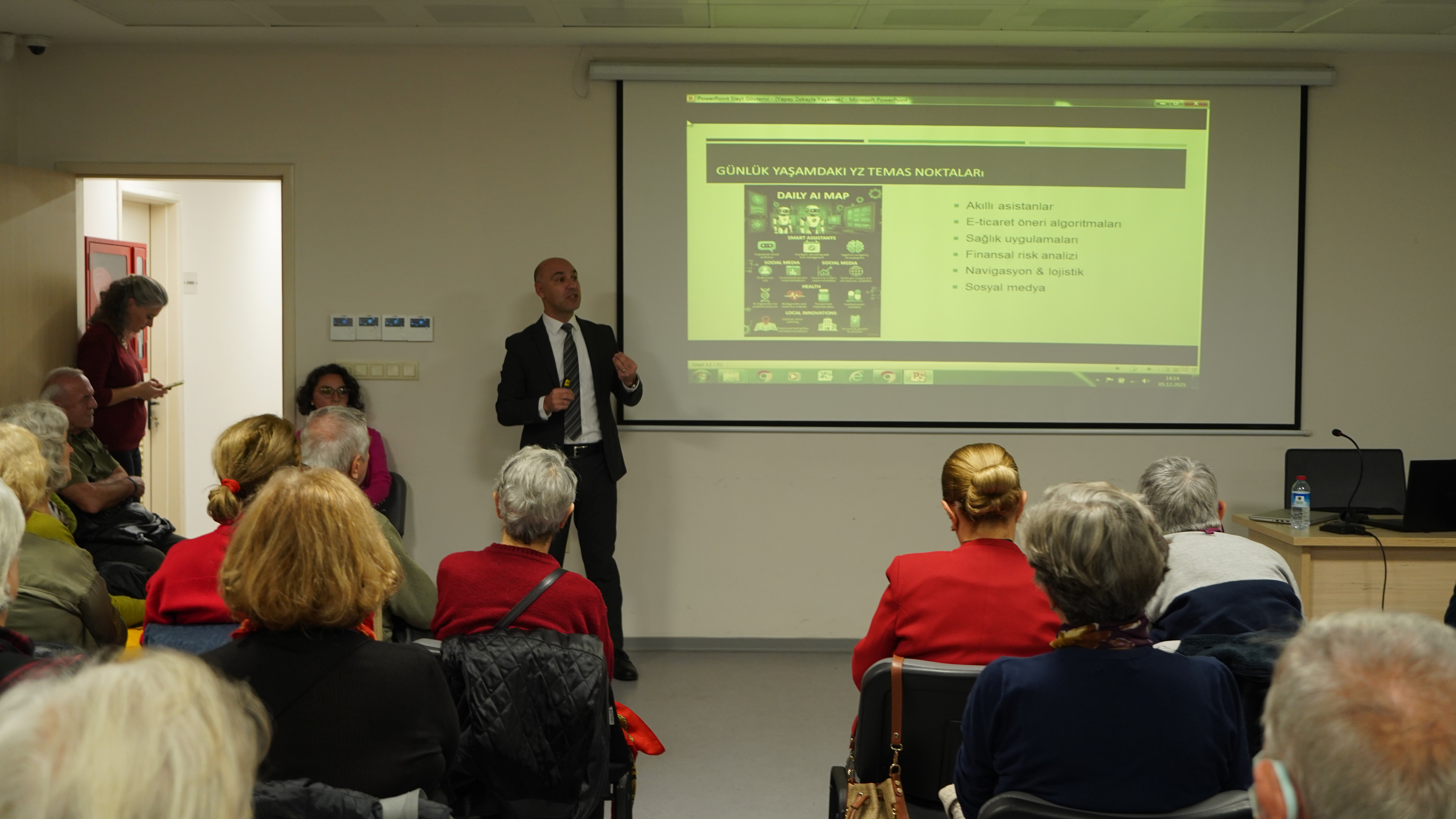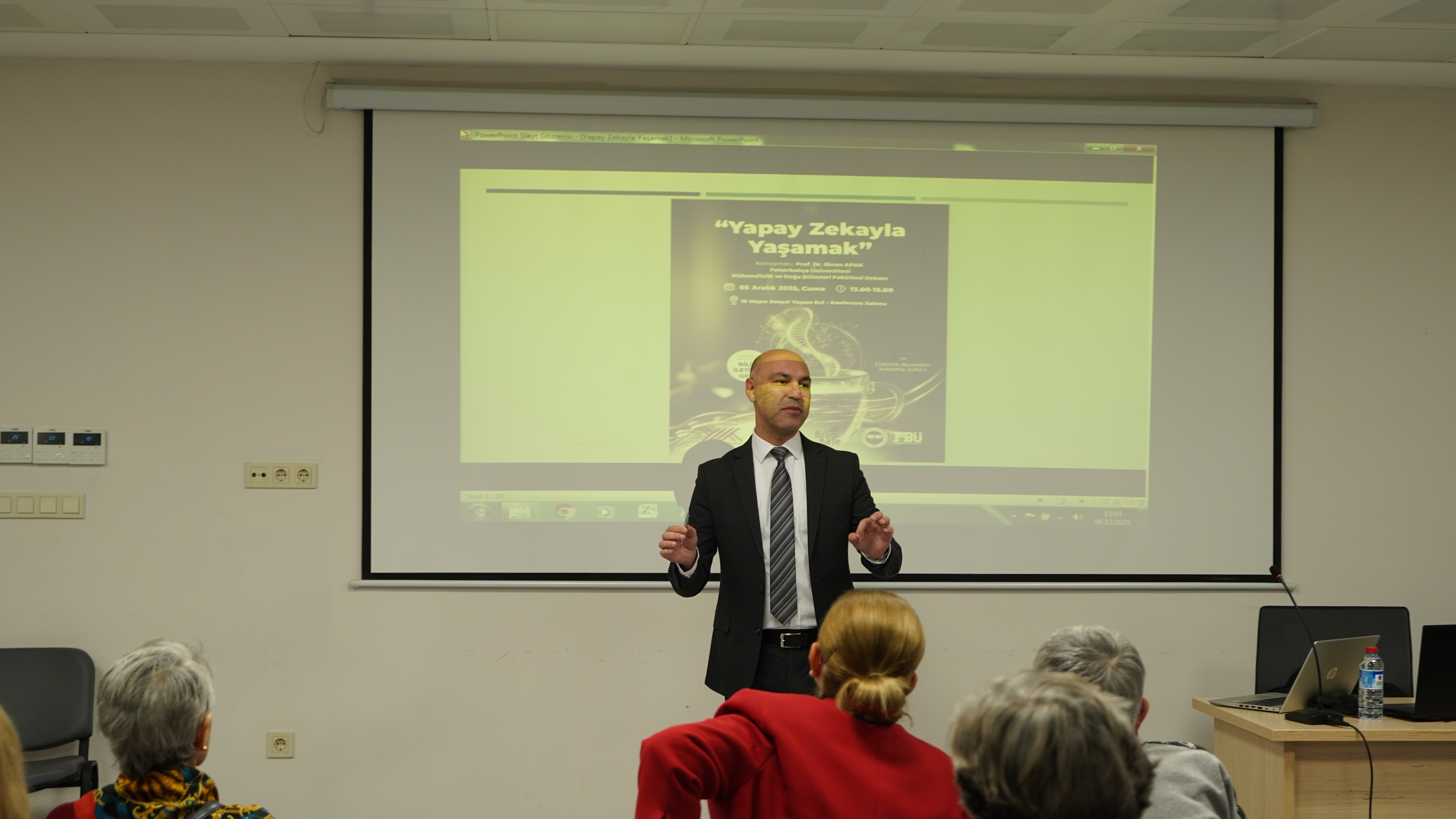 Etkinlik Fenerbahçe Üniversitesi Mühendislik ve Doğa Bilimleri Fakültesi Dekanı Prof. Dr. Sinan Apak tarafından gerçekleştirilirken, yapay zekanın insan hayatına olan etkisini ve gelecekte hayatımızda nasıl yer alacağını kapsamlı bir perspektifle ele aldı.
