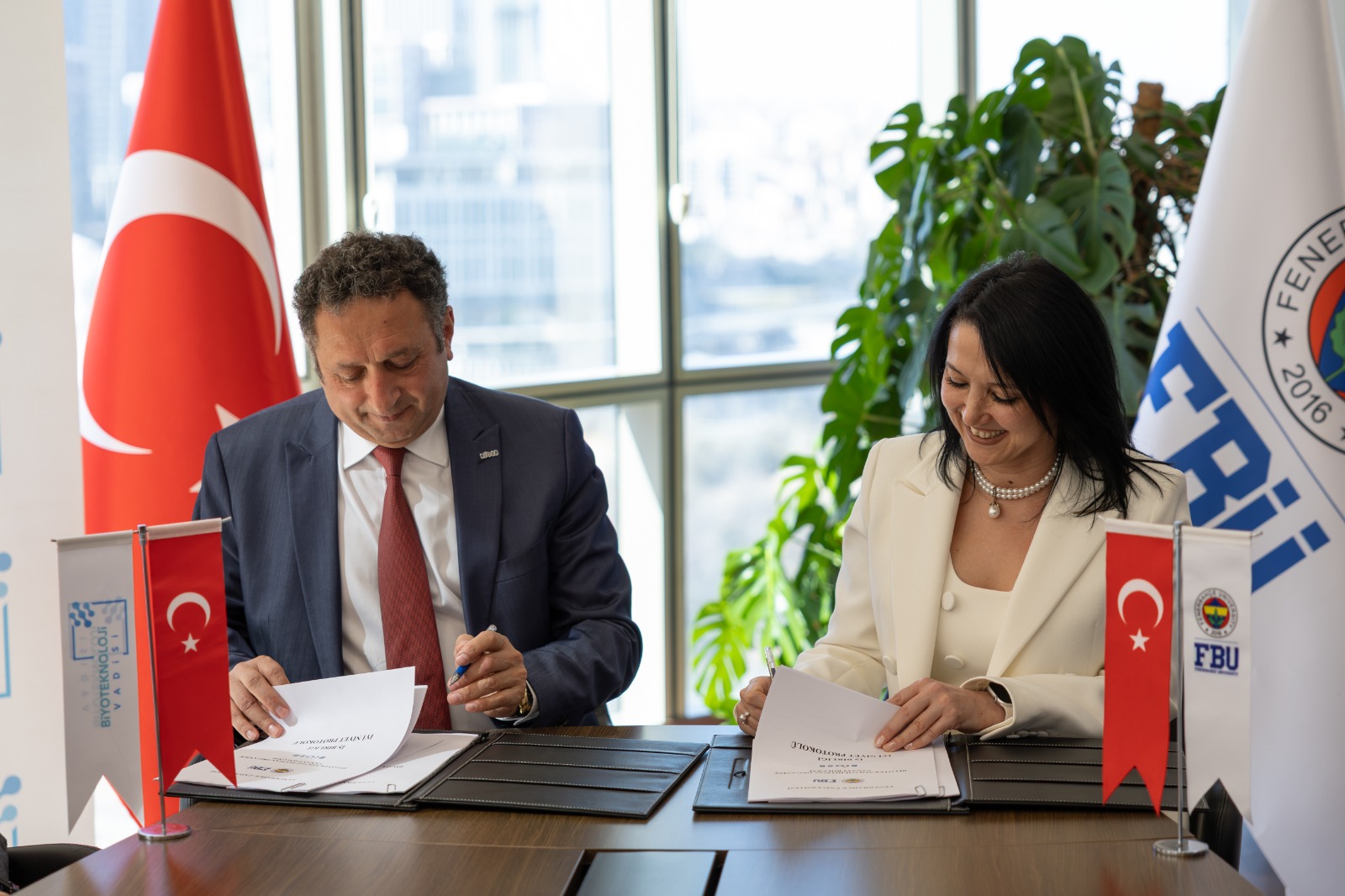 Türkiye’nin yeni bilim ve teknoloji üssü olarak konumlanan Biyoteknoloji Vadisi, Türkiye’nin biyoteknoloji ekosistemini inşa etme yolunda gerçekleştirdiği Sanayi – Akademi iş birliklerine bir yenisini daha ekledi. Bu kapsamda; Bu kapsamda Biyoteknoloji Vadisi ile Fenerbahçe Üniversitesi arasında ‘Stratejik İş Birliği Protokolü’ imzalandı. Düzenlenen imza törenine BİYOSAD Ve BİOSB Yönetim Kurulu Başkanı Dr. Ercan Varlıbaş ve Fenerbahçe Üniversitesi Rektörü Prof. Dr. Fatma Kanca katıldı.