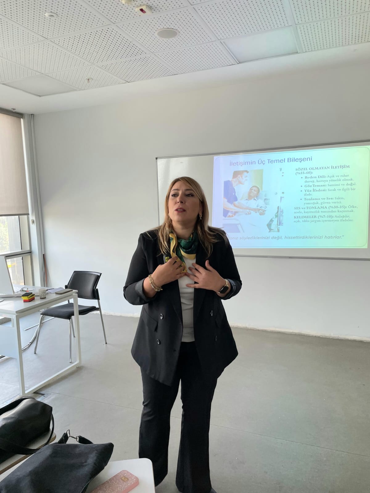Etkinlik, Diyaliz Programı öğrencilerinin yanı sıra sağlık alanında hizmet veren profesyonellerin de katılımıyla önemli bir buluşma noktası olmuştur. Etkinliğe, alanında deneyimli ve uzman olan Öğr. Gör. Pınar BEŞTAŞ konuşmacı olarak katılarak diyaliz hastalarıyla etkili iletişim kurmanın önemi ve bu süreçte karşılaşılan zorluklar üzerine kapsamlı bir sunum yaptı.