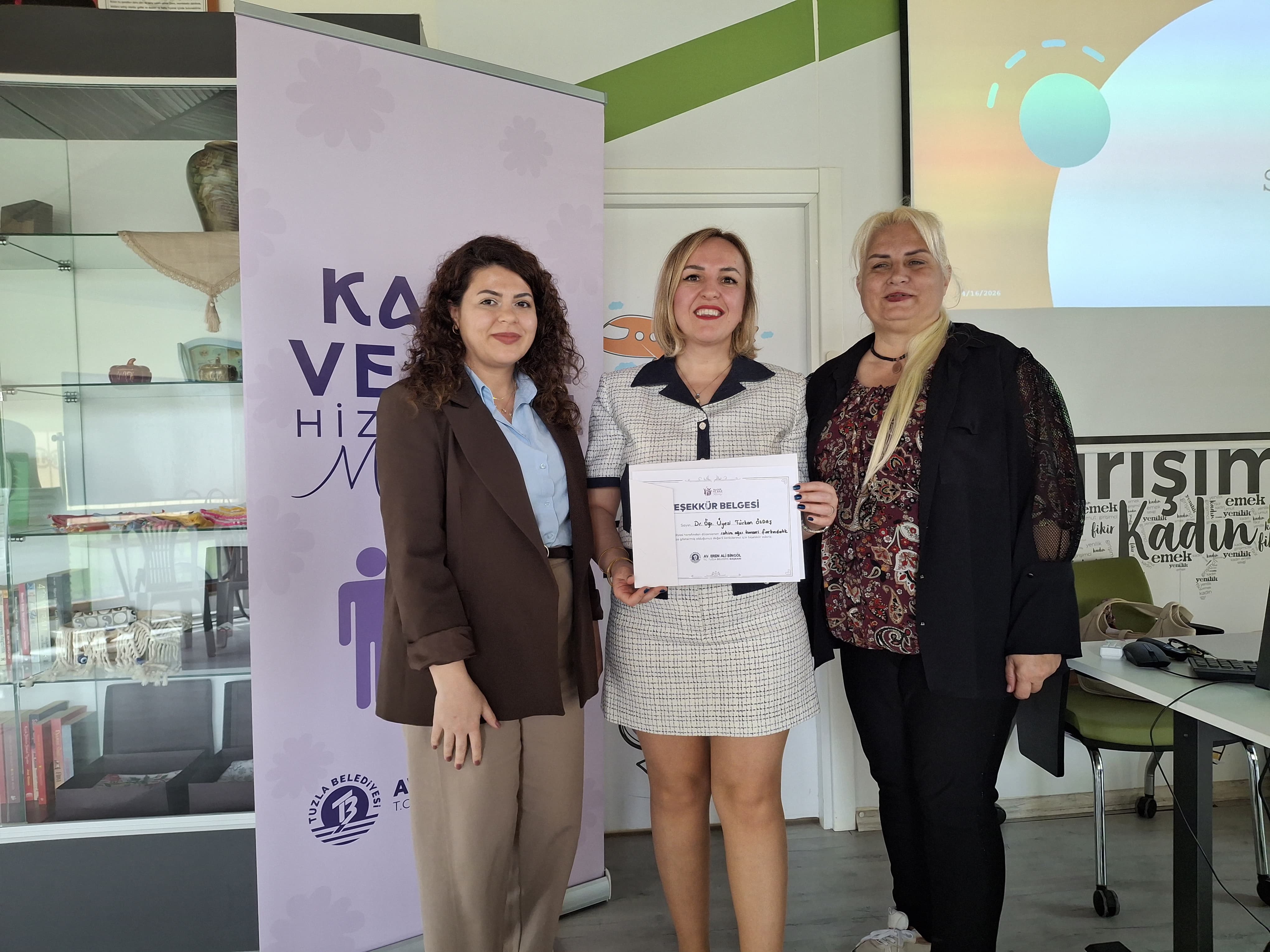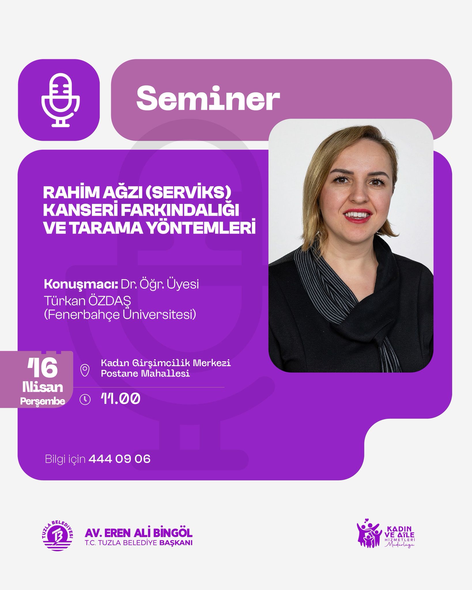 SHMYO Radyoterapi programında görevli öğretim üyesi Dr. Öğr. Üyesi Türkan ÖZDAŞ tarafından, 17.04.2026 Perşembe günü Tuzla Belediyesi’nin daveti üzerine Tuzla Belediyesi Kadın Girişimcilik Merkezi'nde Rahim Ağzı (Serviks) Kanseri ve Taramalarına yönelik sunum gerçekleştirildi.
