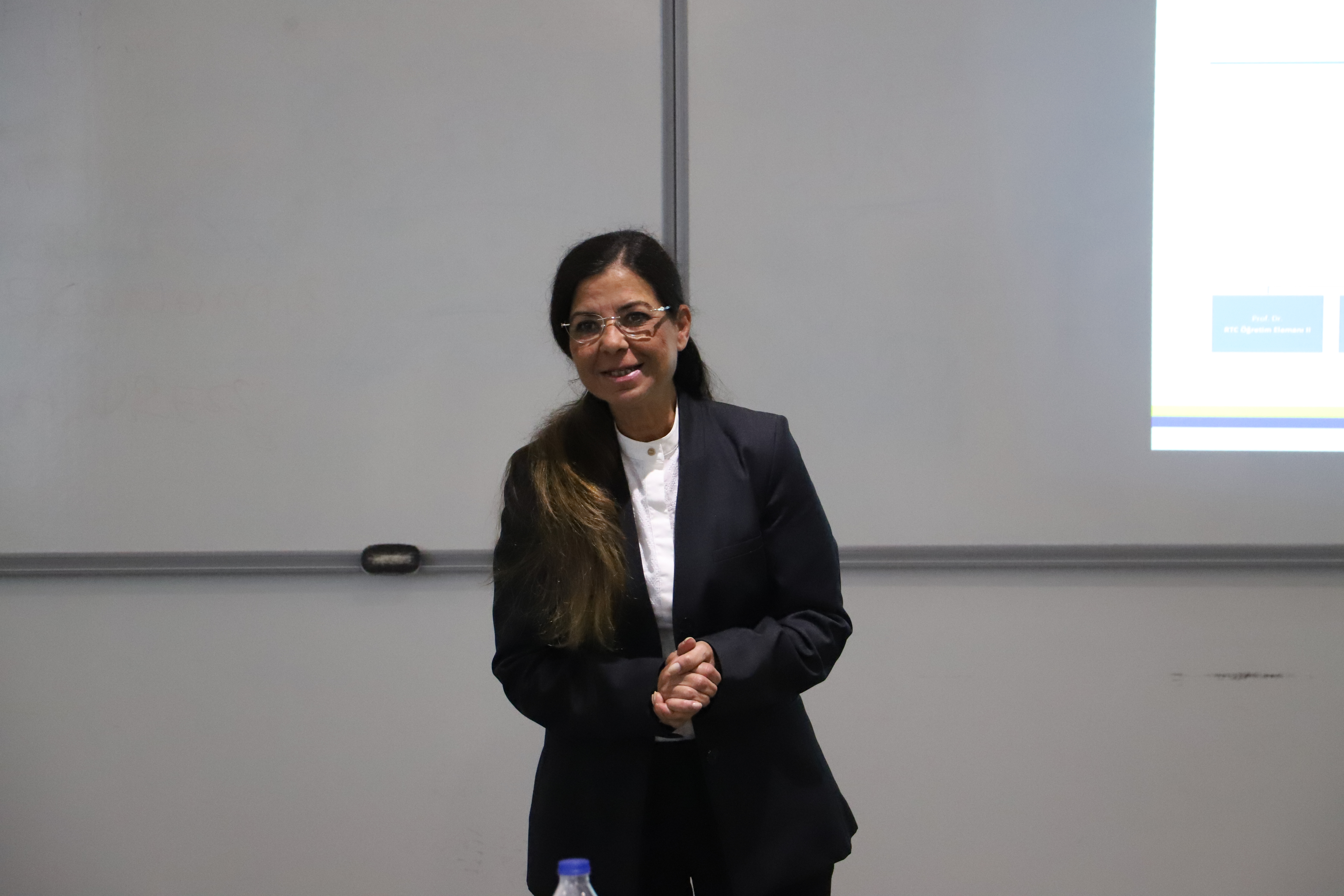 Kütüphane ve Dokümantasyon Daire Başkanı Belgin Çetin, öğrencileri üniversite kütüphanesi, bilgi kaynakları ve dokümantasyon hizmetleri hakkında bilgilendirdi. Ardından, her bölümden mezun öğrenciler deneyim paylaşımlarında bulunarak yeni öğrencilere akademik ve profesyonel yaşamlarına yönelik tavsiyeler sundu. Program, soru-cevap bölümü ve kapanış konuşmasının ardından sona erdi.