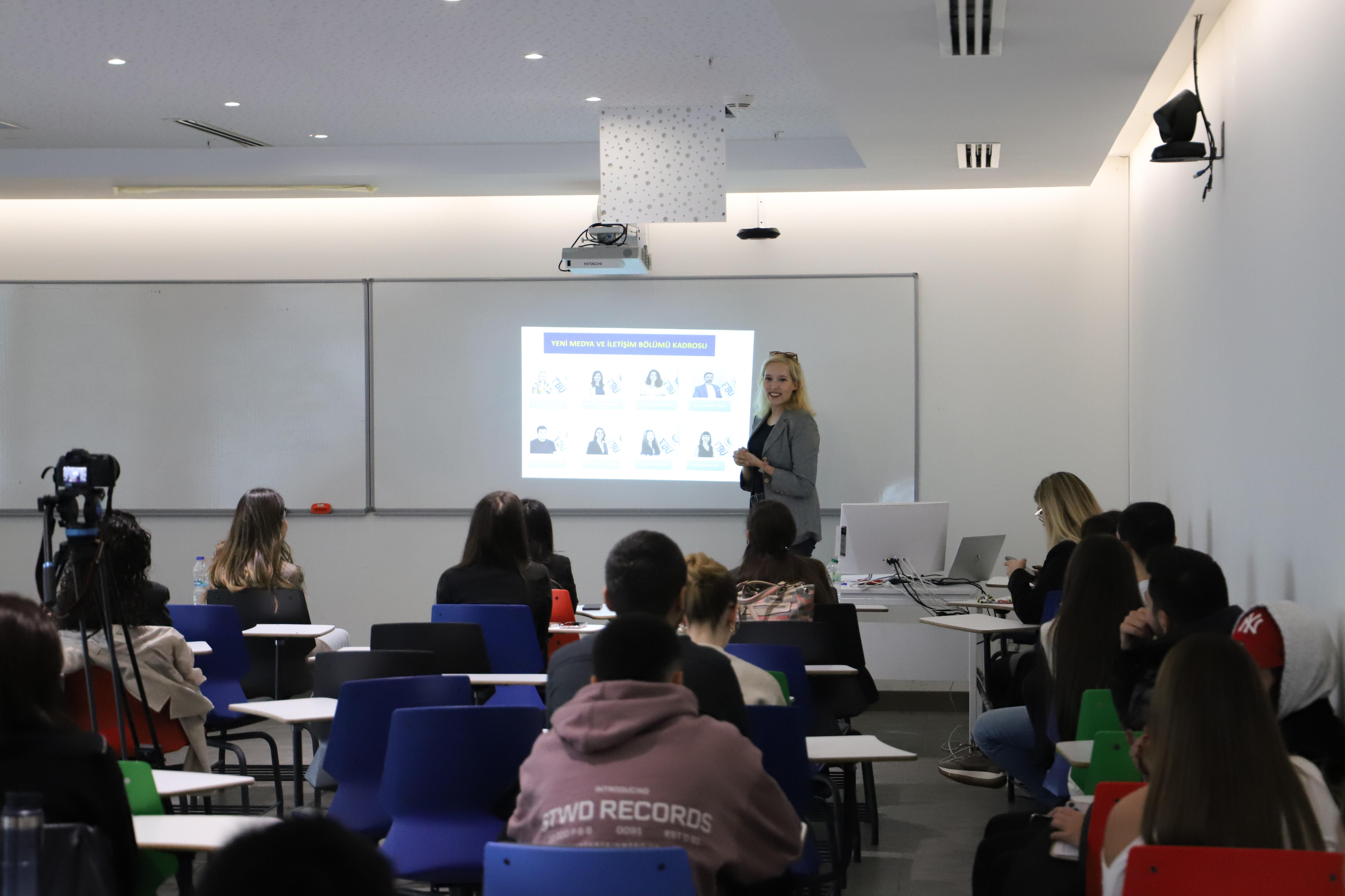 Sabah oturumunda gerçekleştirilen 1. Sınıf Oryantasyon Programı, fakülteye bu yıl katılan öğrenciler için düzenlendi. Program kapsamında Radyo, Televizyon ve Sinema Bölüm Başkanı Prof. Dr. Neşe Kars Tayanç, Halkla İlişkiler ve Reklamcılık Bölüm Başkanı Dr. Öğr. Üyesi Ece Doğan Erdinç ve Yeni Medya ve İletişim Bölümü Başkanı Dr. Öğr. Üyesi Esra Pelin Güregen Dereboyu, bölümlerine ilişkin bilgilendirme sunumlarını gerçekleştirdi. Sunumlarda, bölümlerin akademik yapısı, uygulama alanları, öğrenci projeleri ve sektörel iş birliklerine değinildi.