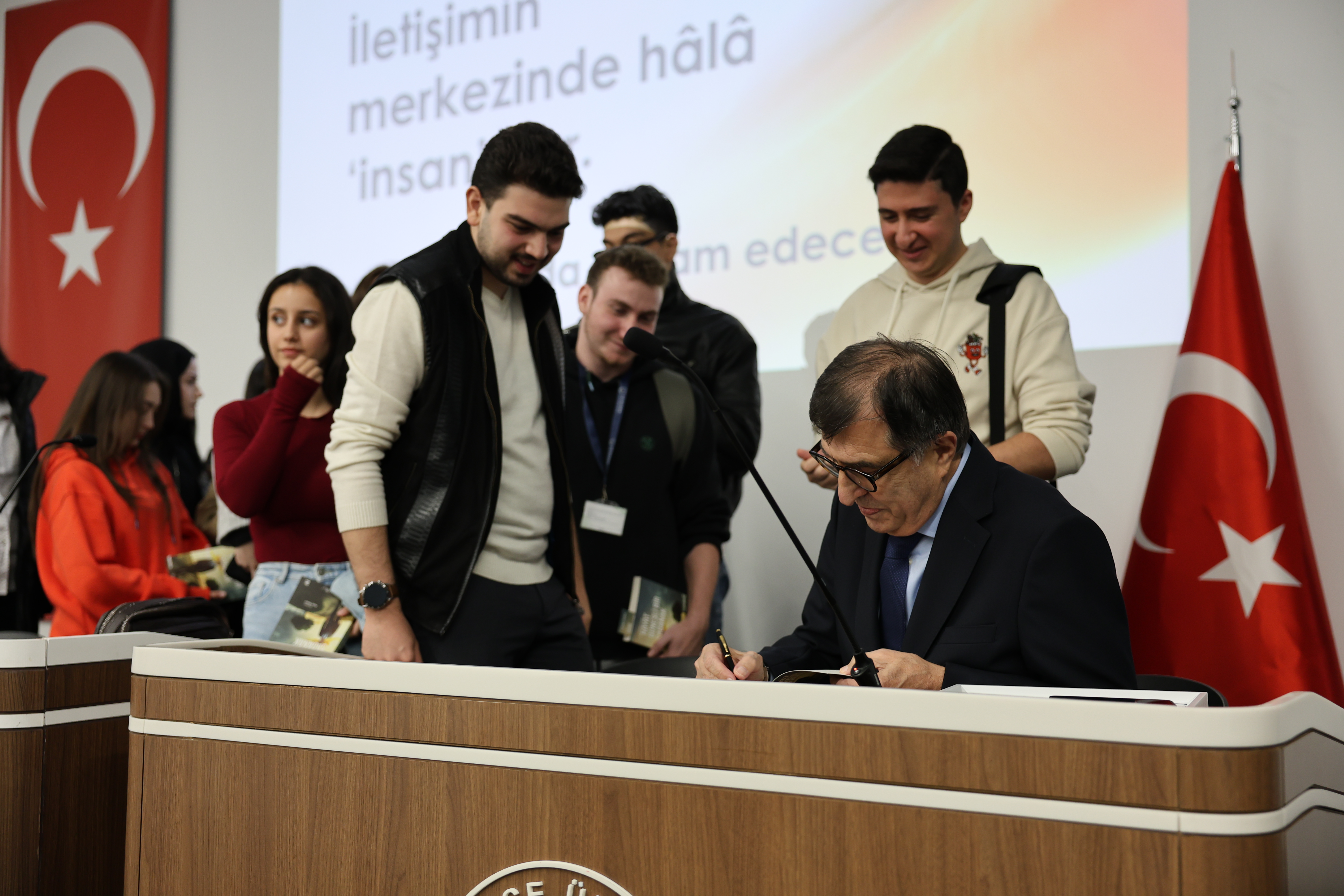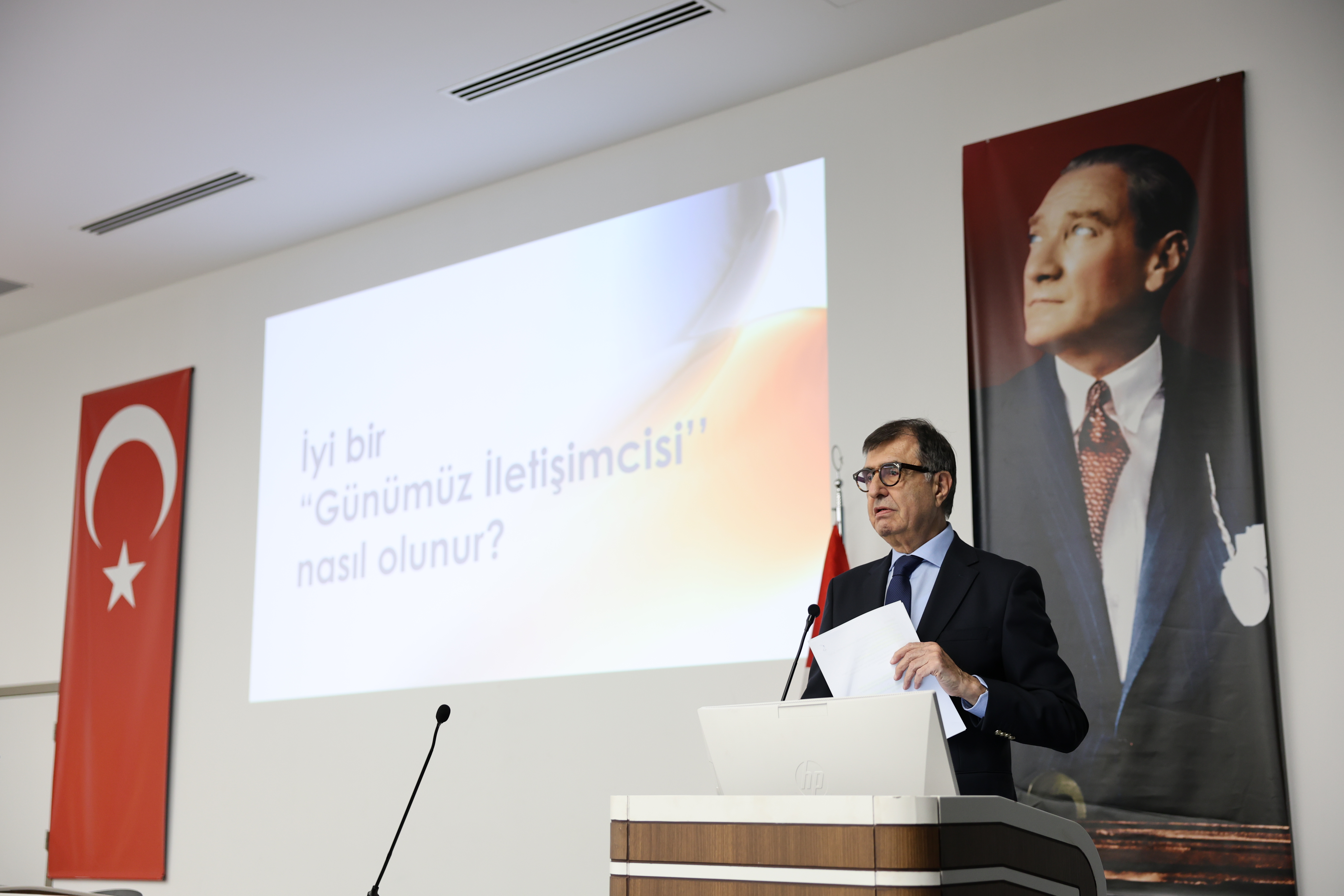 Ahmet Pura, “Hayat Güneşli Bir Sağanak” başlıklı konuşmasında öğrencilerle kişisel gelişim, mesleki etik ve iletişim sektöründe sürdürülebilir başarı üzerine bir söyleşi gerçekleştirdi. Hayatın beklenmedik yönlerini bir sağanağa, insanın azmini ise bu sağanağın içindeki güneşe benzeten Pura, genç iletişimcilerin değişen dünyada umut, üretkenlik ve değer yaratma sorumluluğu taşıdığına dikkat çekti.