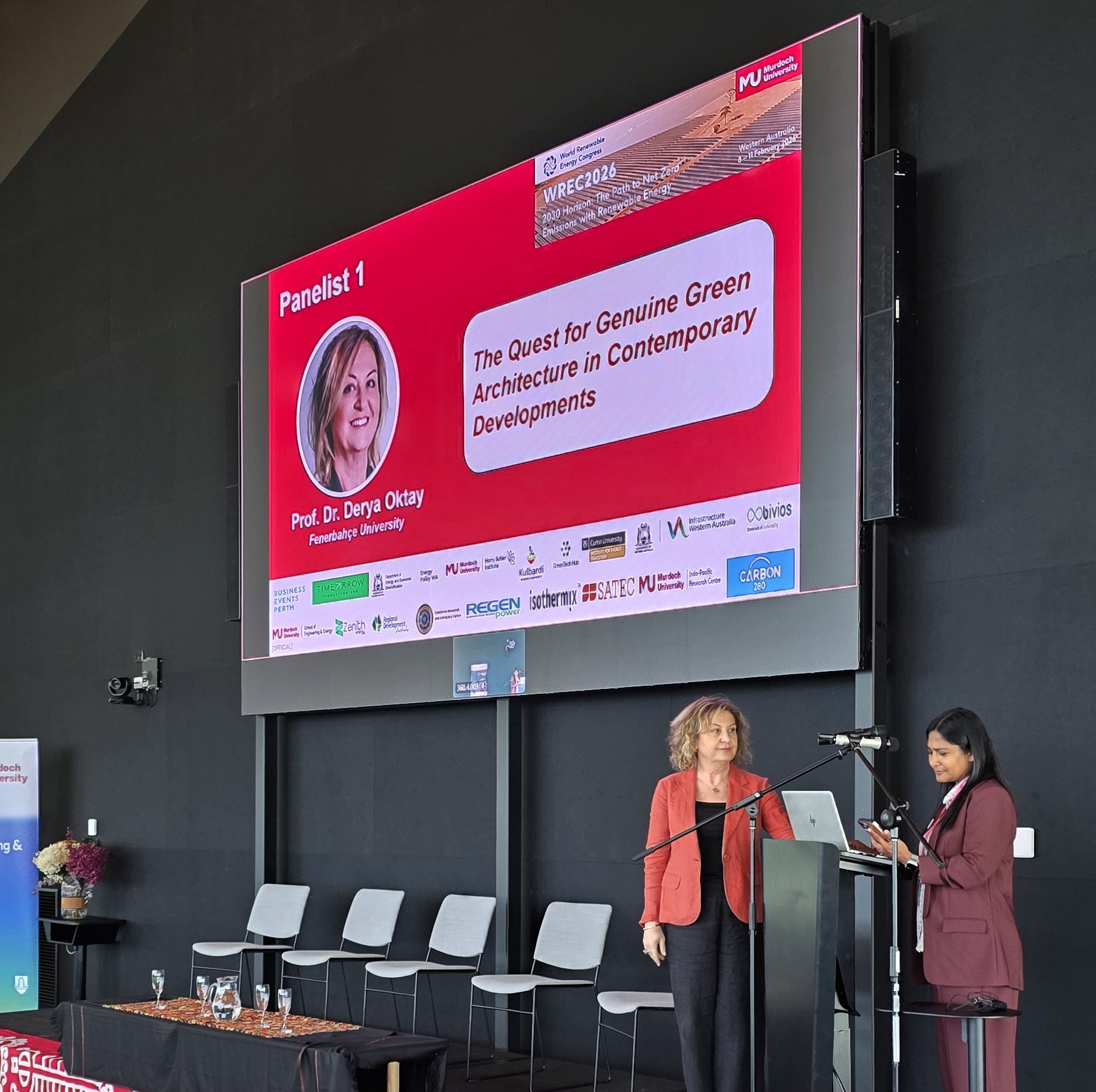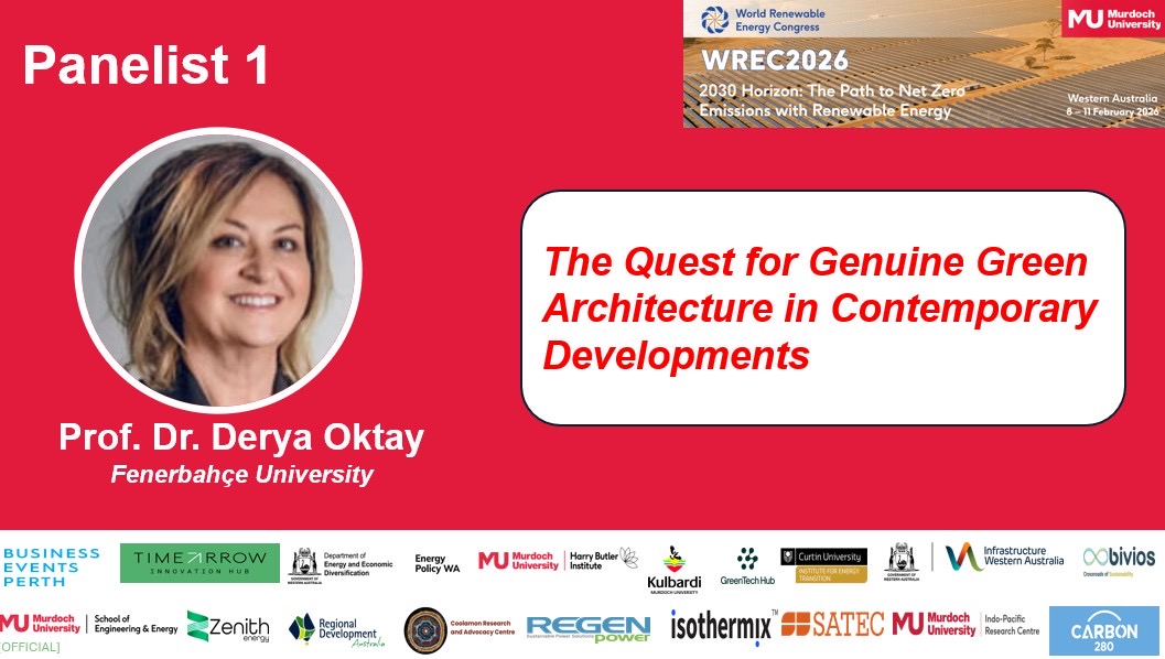 Mimarlık ve Tasarım Fakültesi Dekanı Prof. Dr. Derya Oktay, Murdoch Üniversitesi ev sahipliğinde Avustralya’nın Perth kentinde gerçekleştirilen Dünya Yenilenebilir Enerji Kongresi'nde (World Renewable Energy Congress 2026) davetli konuşmacı olarak yer aldı. Bu katılımıyla hem üniversitemizi, hem de tek Türk katılımcı olarak ülkemizi temsil etti.