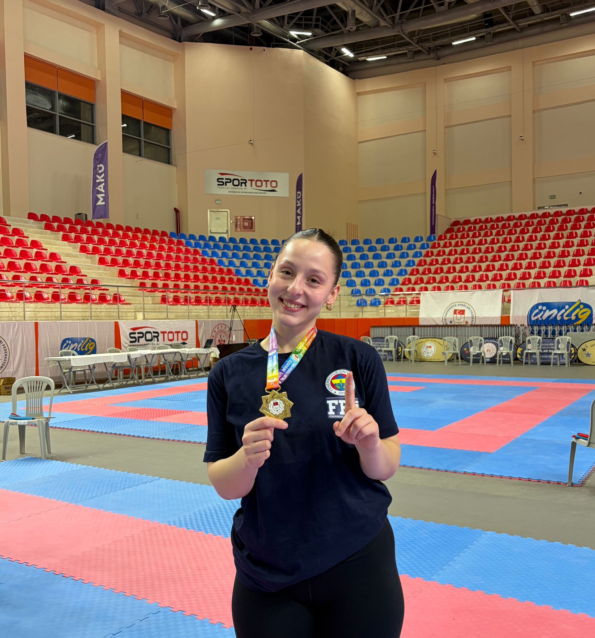 Spor Bilimleri Fakültesi Spor Yöneticiliği Bölümü ikinci sınıf öğrencimiz Sudenur Aksoy, 28–31 Ocak tarihleri arasında Burdur’da düzenlenen Üniversiteler Arası Karate Türkiye Şampiyonası’nda Kumite 68 kg kategorisinde Türkiye Şampiyonu oldu.
