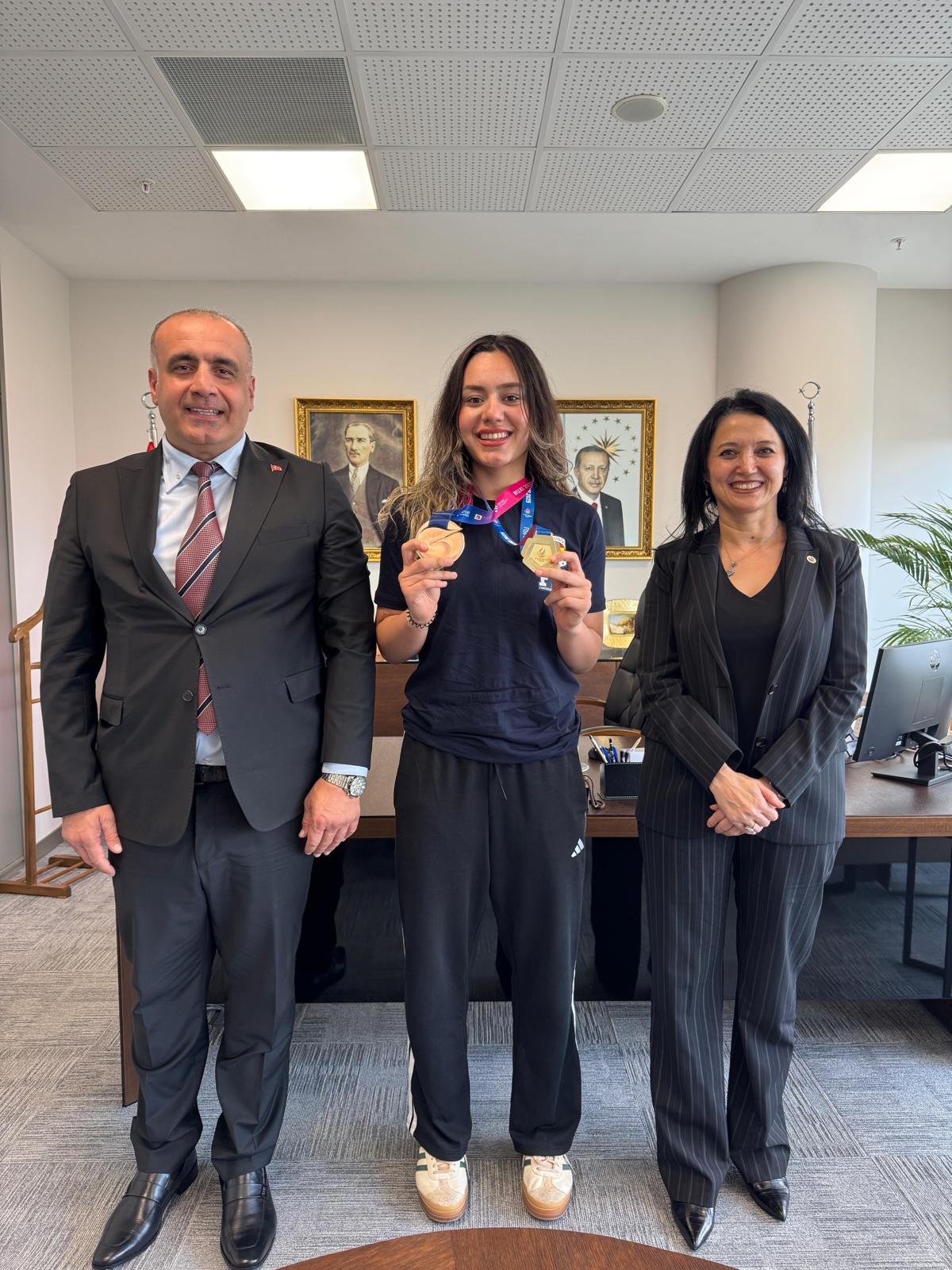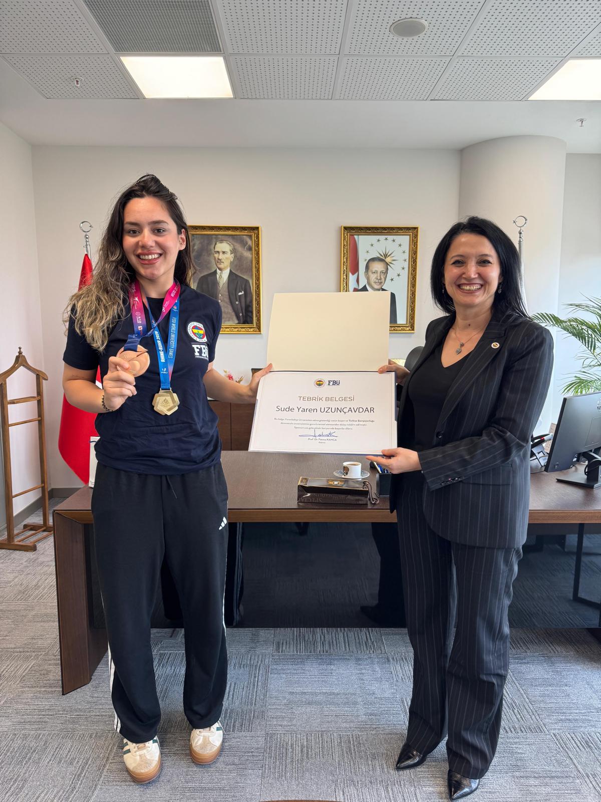Gösterdiği üstün performansla hem üniversitemizi hem de ülkemizi ulusal ve uluslararası arenada en iyi şekilde temsil eden sporcumuz, Rektörümüz Sayın Prof. Dr. Fatma Kanca tarafından makamında kabul edilmiştir.