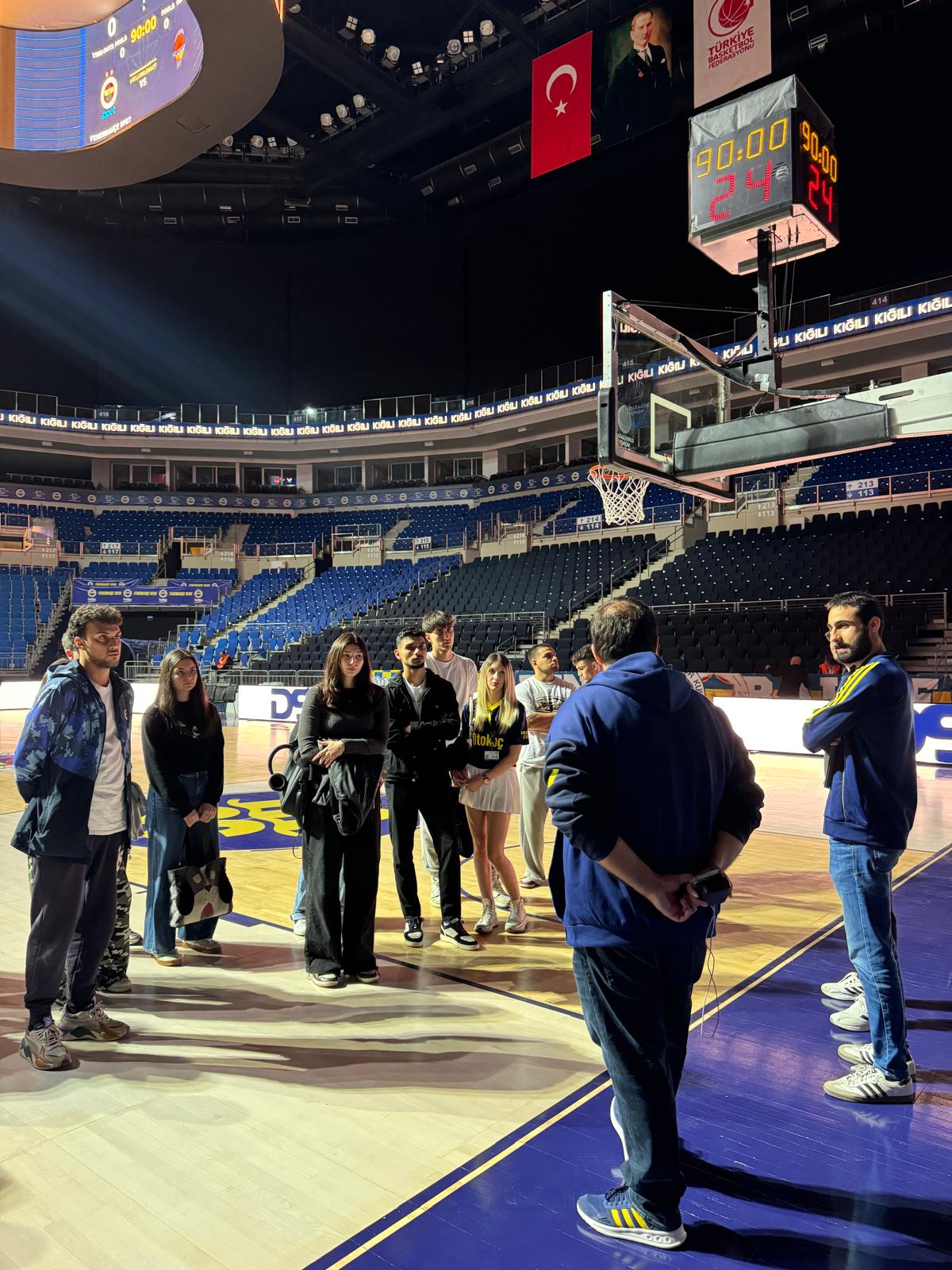 4 Kasım Salı günü gerçekleştirilen ziyarette öğrenciler, EuroLeague düzeyindeki bir müsabakanın ön hazırlık süreçlerini yerinde gözlemleme fırsatı buldu. Organizasyonun planlama, medya koordinasyonu, salon içi görev dağılımı ve takım hazırlıkları gibi birçok detay öğrenciler tarafından incelendi.